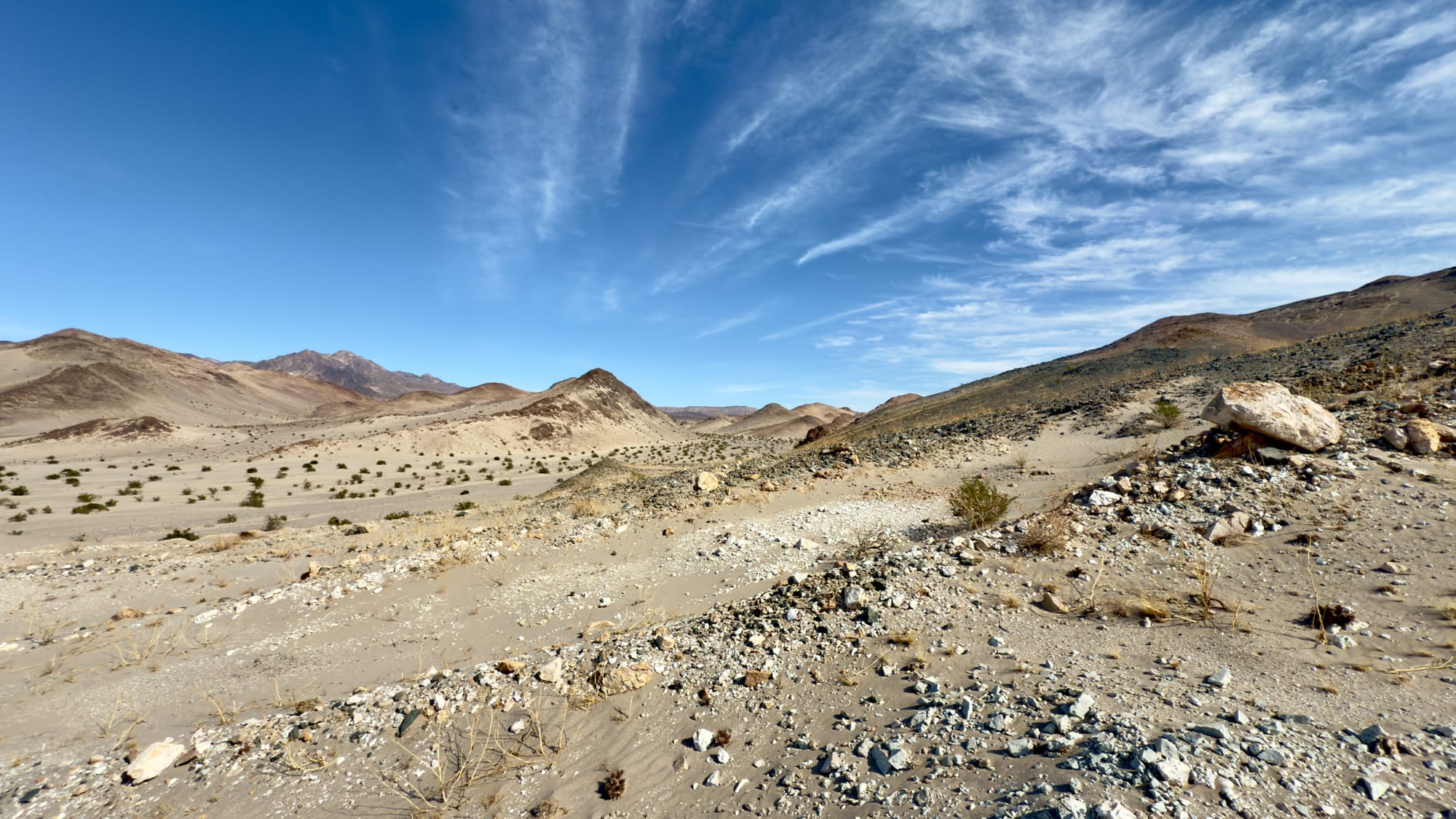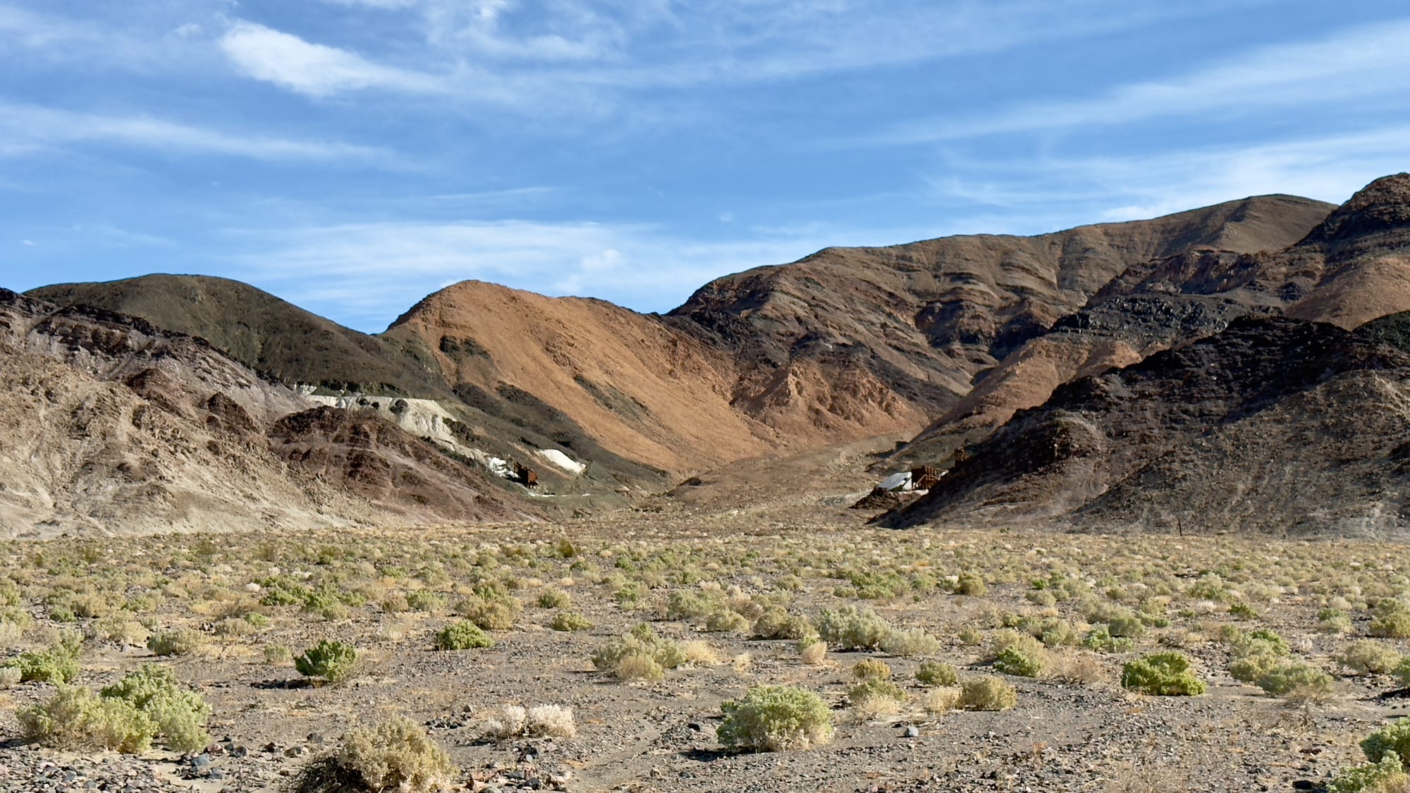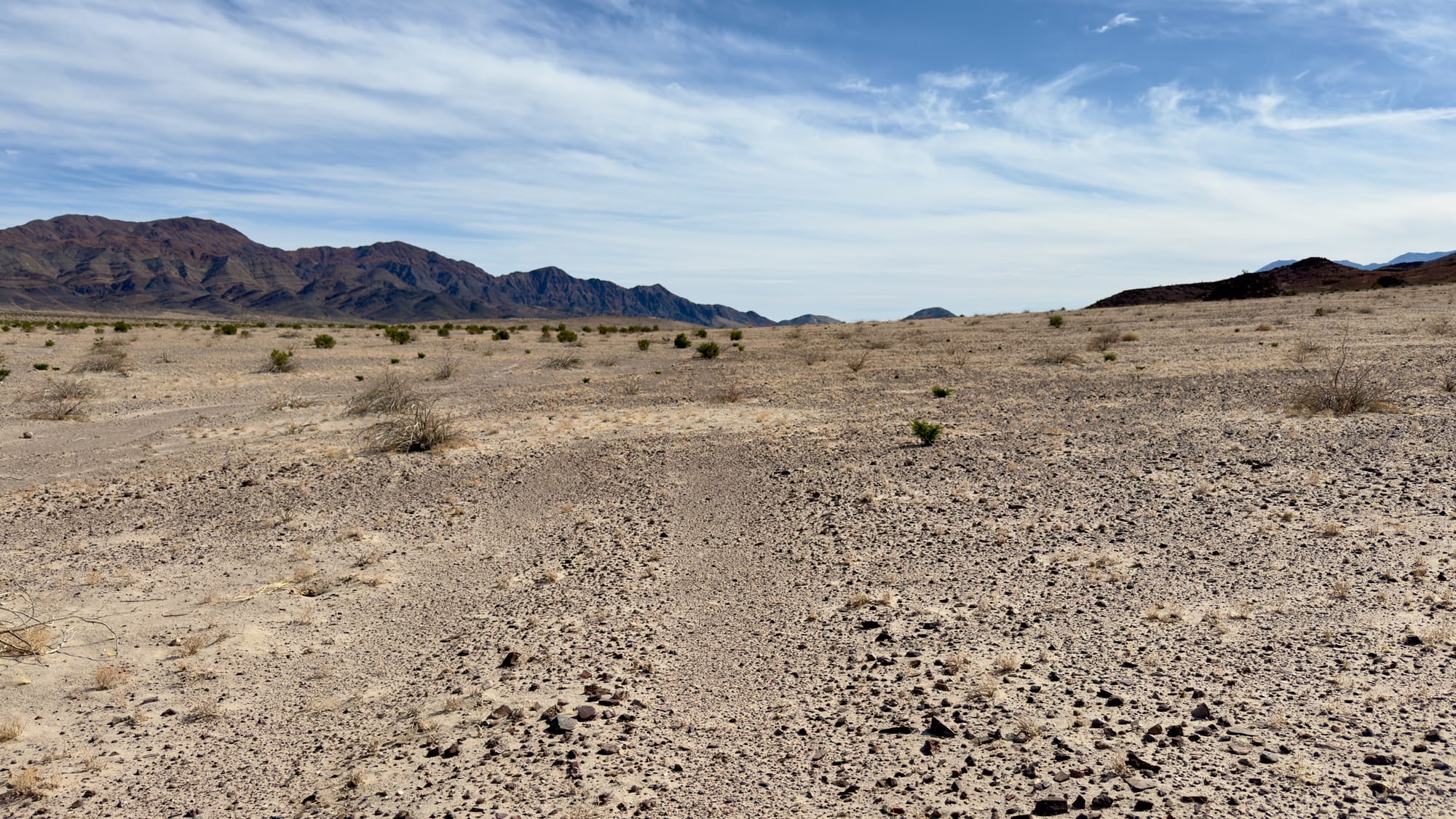 We found the middle fork and followed that until it eventually petered out so we veered easy and joined a more modern, albeit still abandoned, road. All along this part you are walking up the eastern fringe of Buckwheat Wash which drains the Ibex Hills and Talc Hills into the Amargosa River watershed. This section isn’t some well-manicured park trail. It’s a wander through time and rock, picking through faint tracks and washes, past scattered bones and tumbleweeds.
