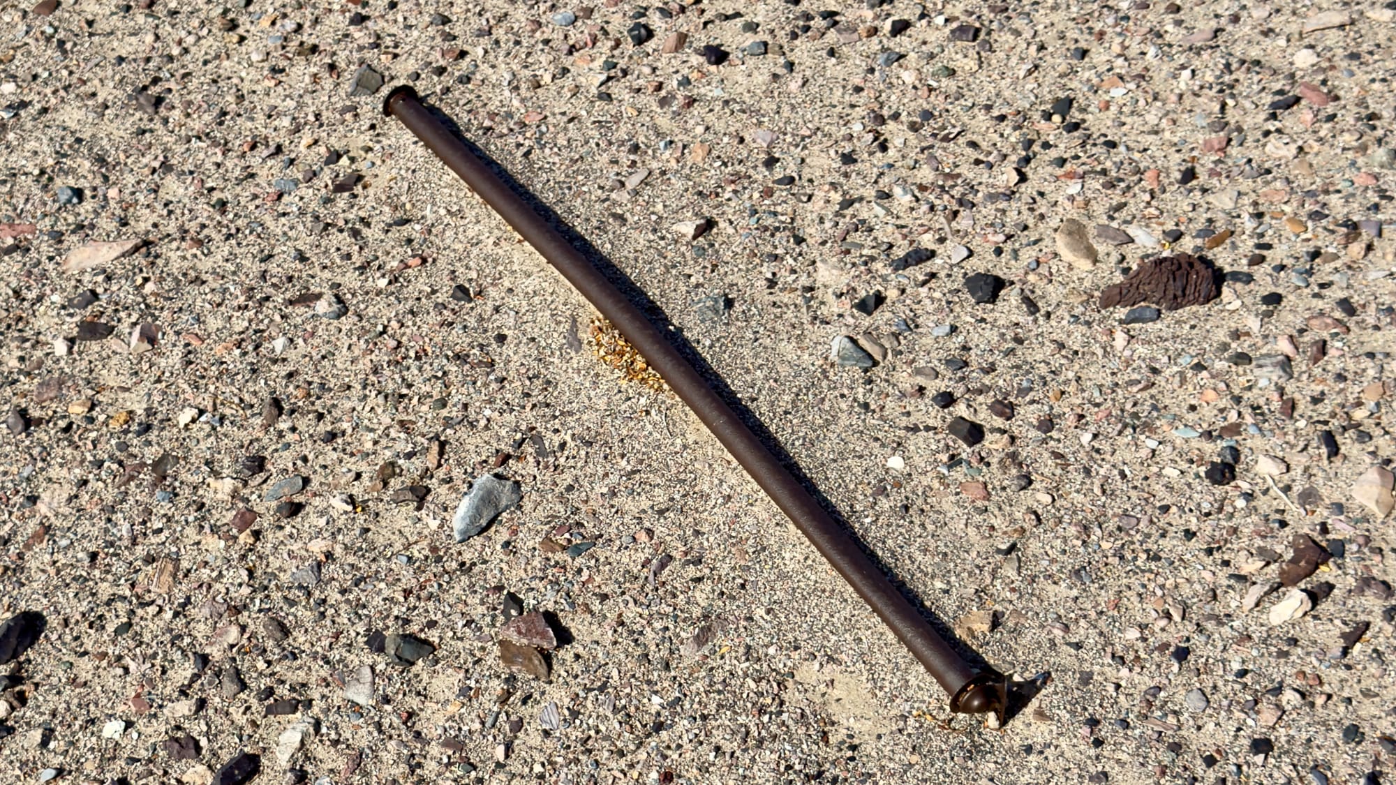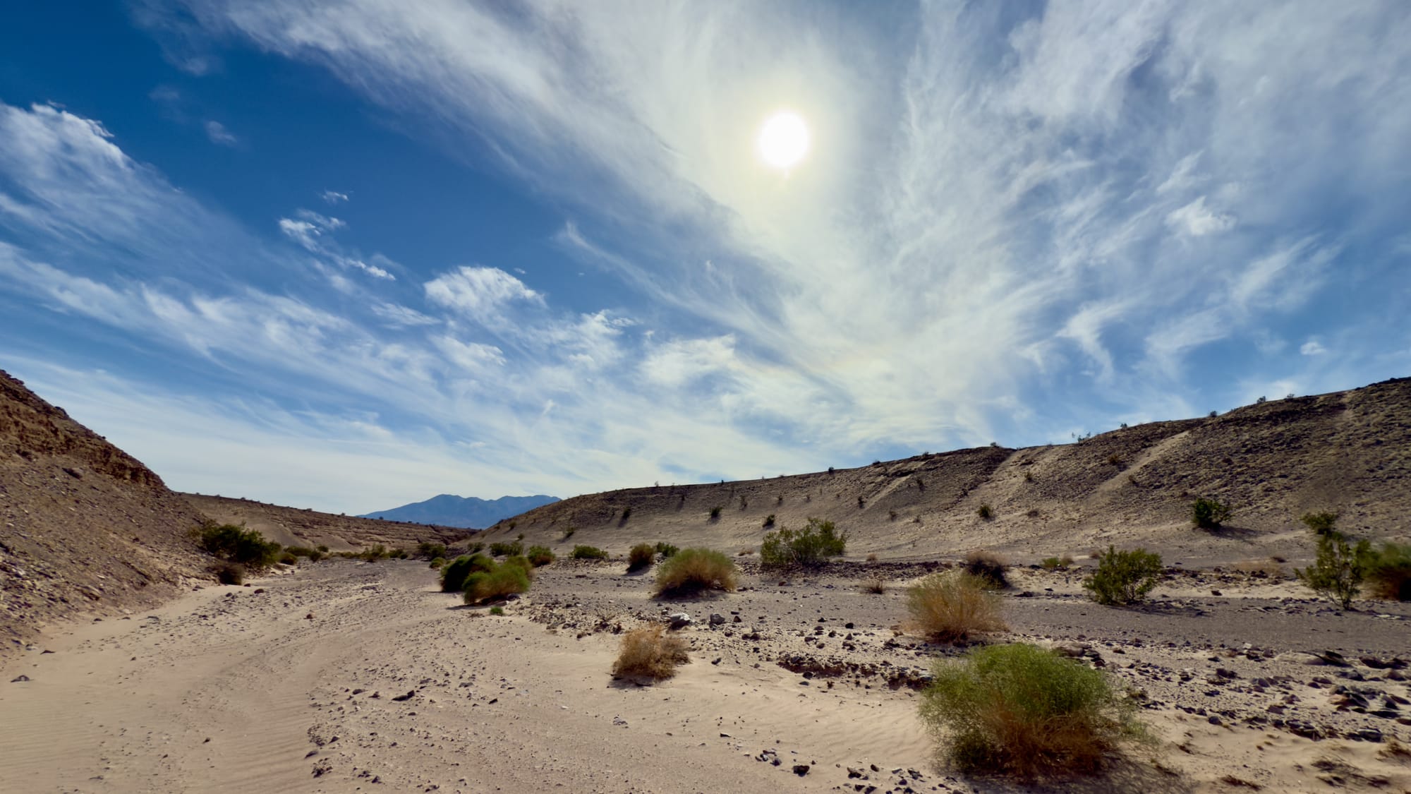 Top Left: Looking back at the expanse of the Amargosa River route. Top Center: The geology and terrain along here is very different than other parts of the park and among my favorite. Top Right: A curtain rod washed down from someplace in the hills. Bottom Left: A .50 caliber shell from a BMG; stamped LC 43 so manufactured in 1943 at the Lake City Munitions Plant in Independence, Missouri. Bottom Right: Looking back down the more modern road after we lost the middle route.