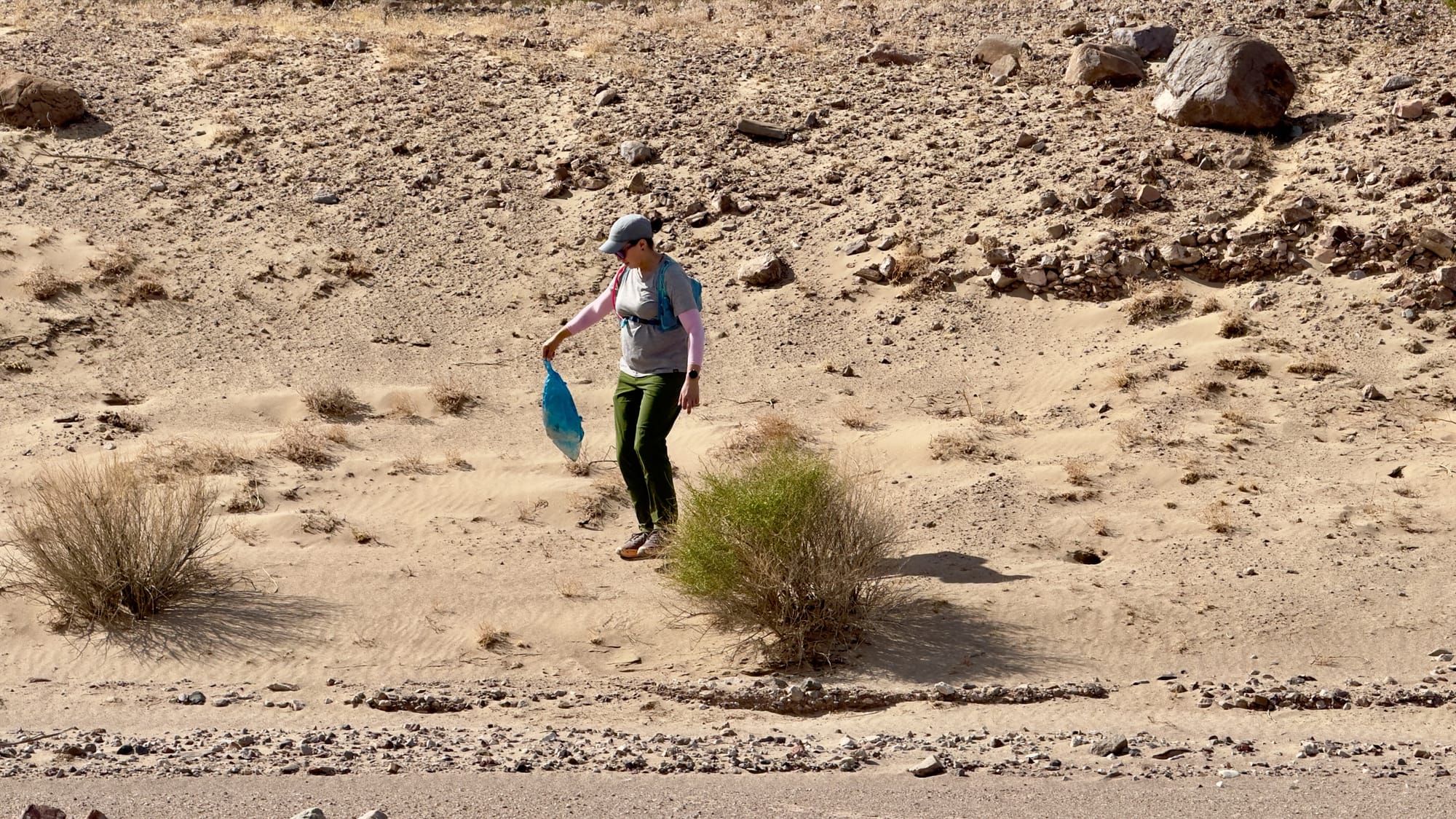 Difficulty: Moderate. Some route-finding, no shade or respites from the sun, soft sand will be very tiring for those unaccustomed with desert hiking.