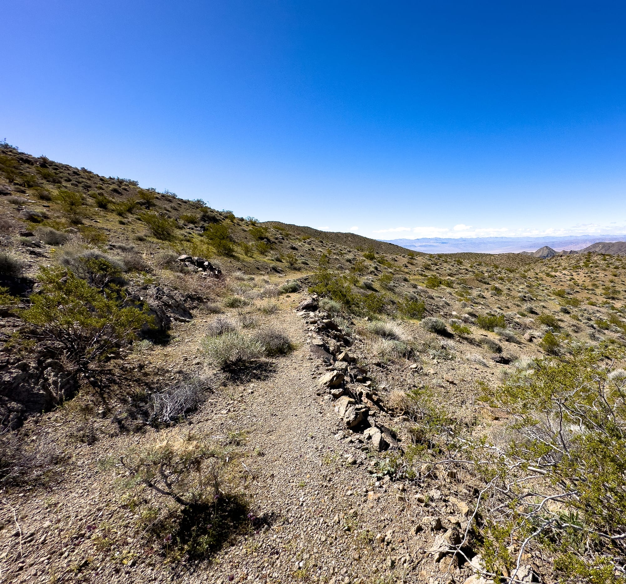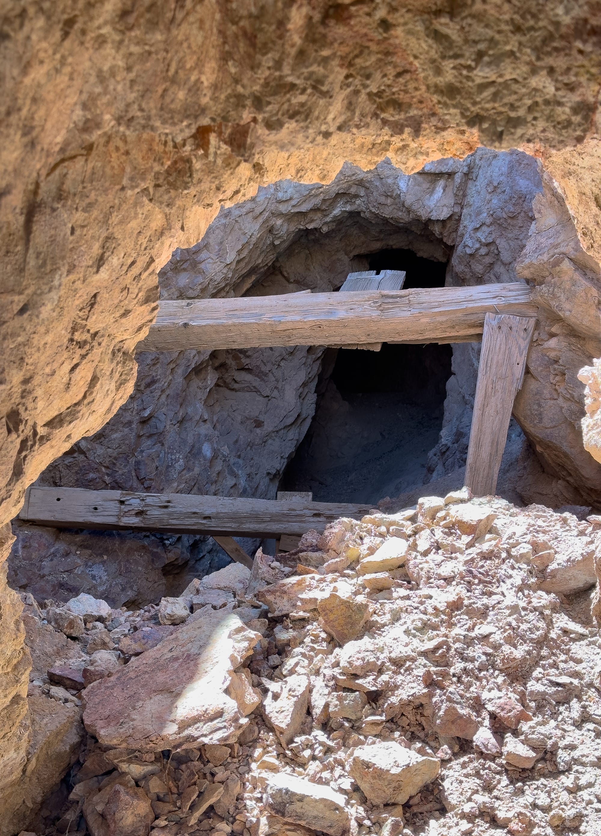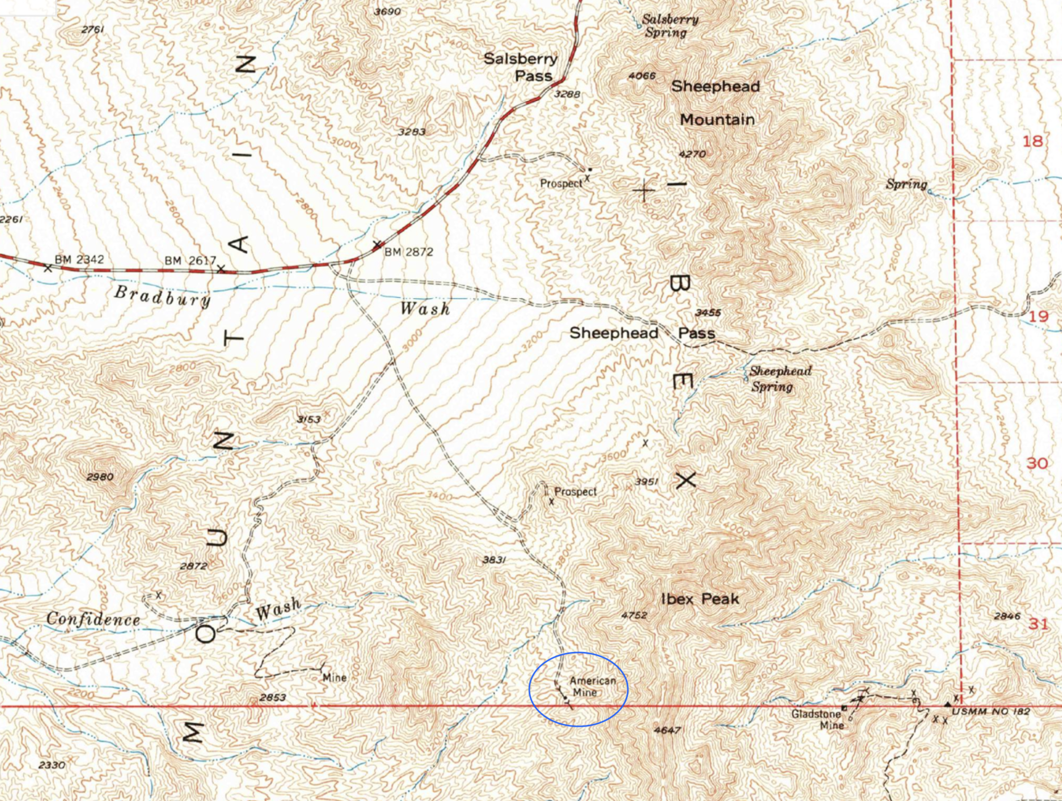 On this trip, we visited The American Mine which are a former copper-gold-silver mine located in section 5, Township 20N, Range 5E, San Bernardino Meridian, approximately 0.7 miles (1.1 kilometers) southwest of Ibex Peak. The property consisted of five claims.