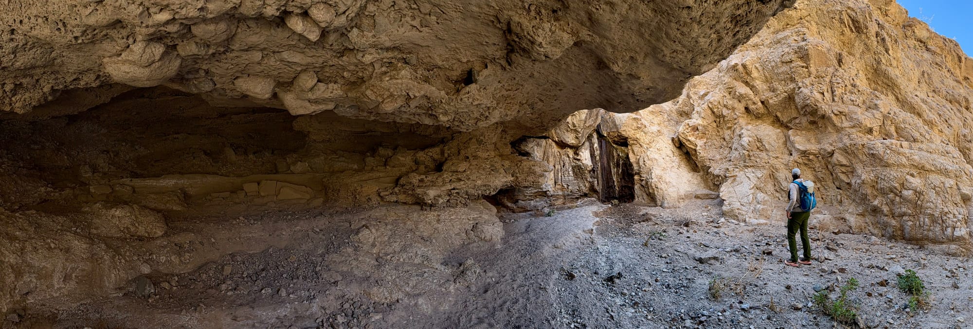 Once you see the first signs of water flow, follow it until you reach a large grotto. This is The Holdout where Scotty camped many nights. Keep your eyes peeled for some of the remaining artifacts (don't take them) left from that time period.