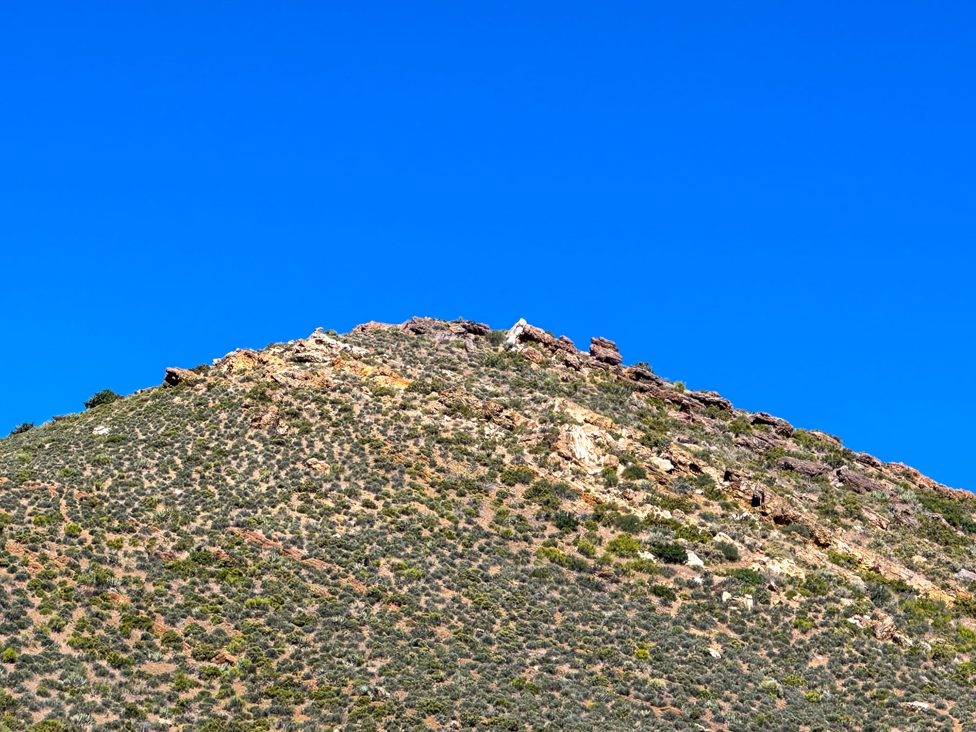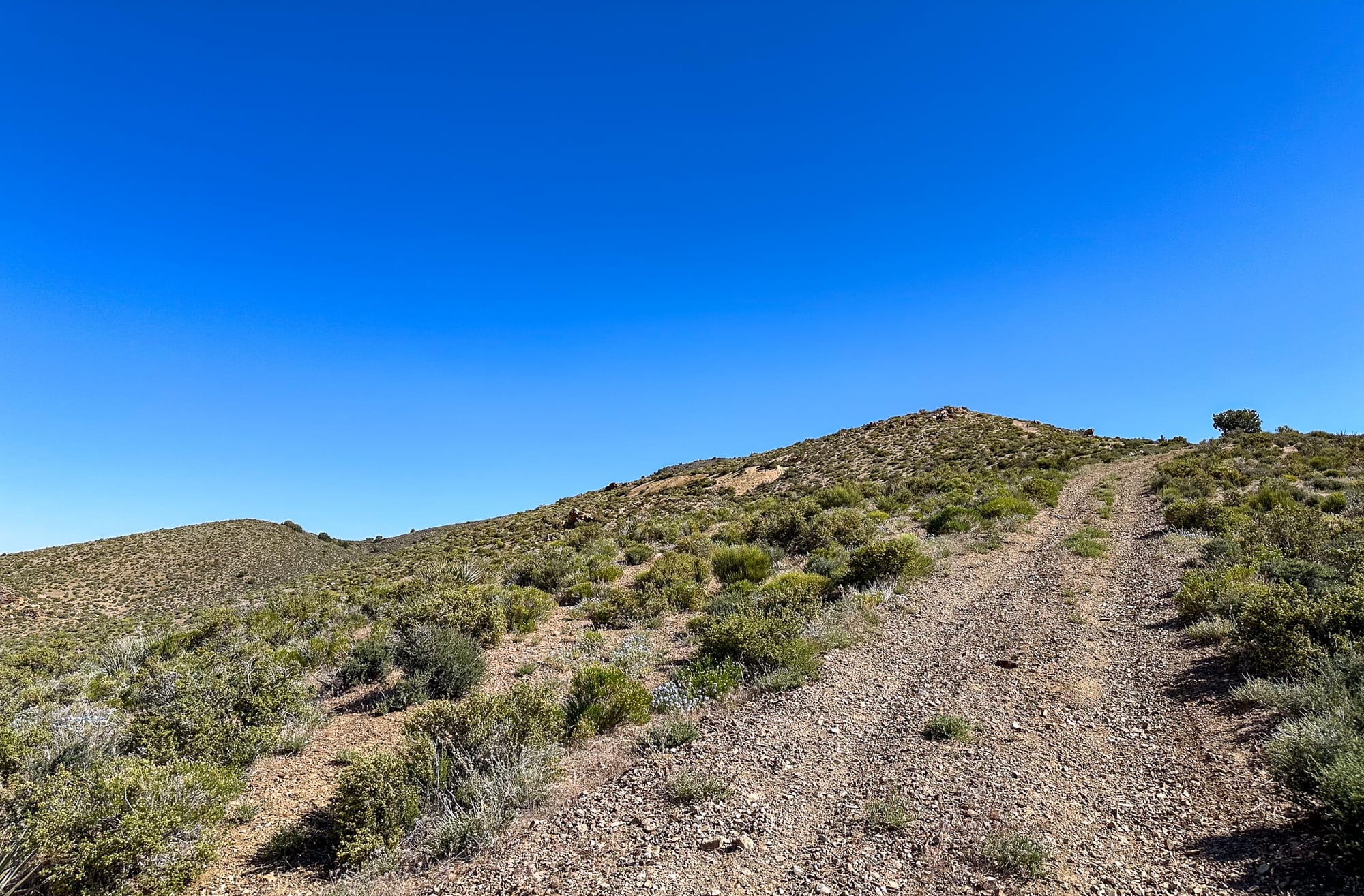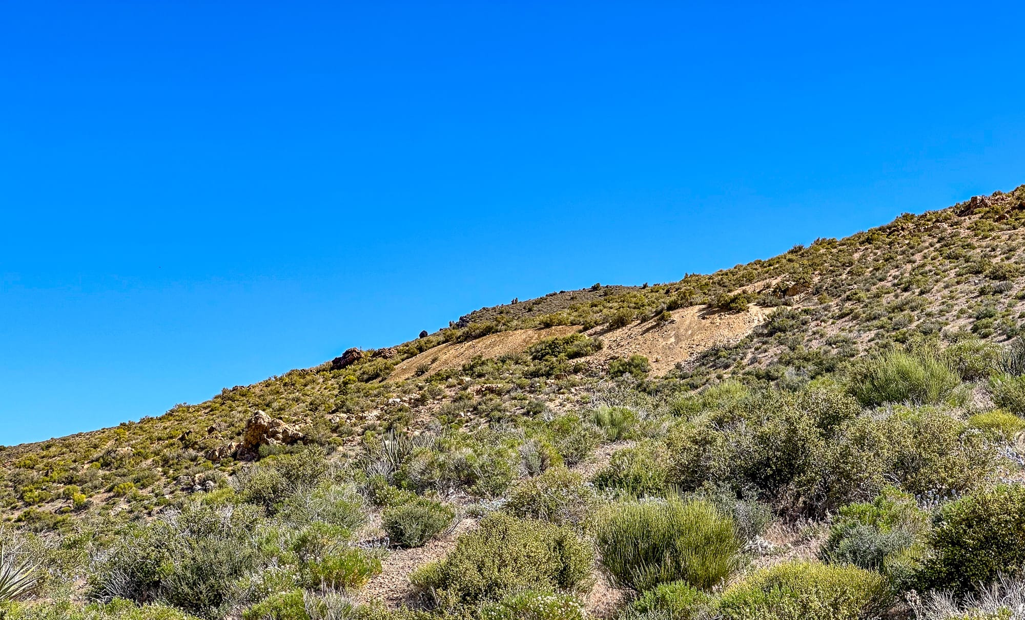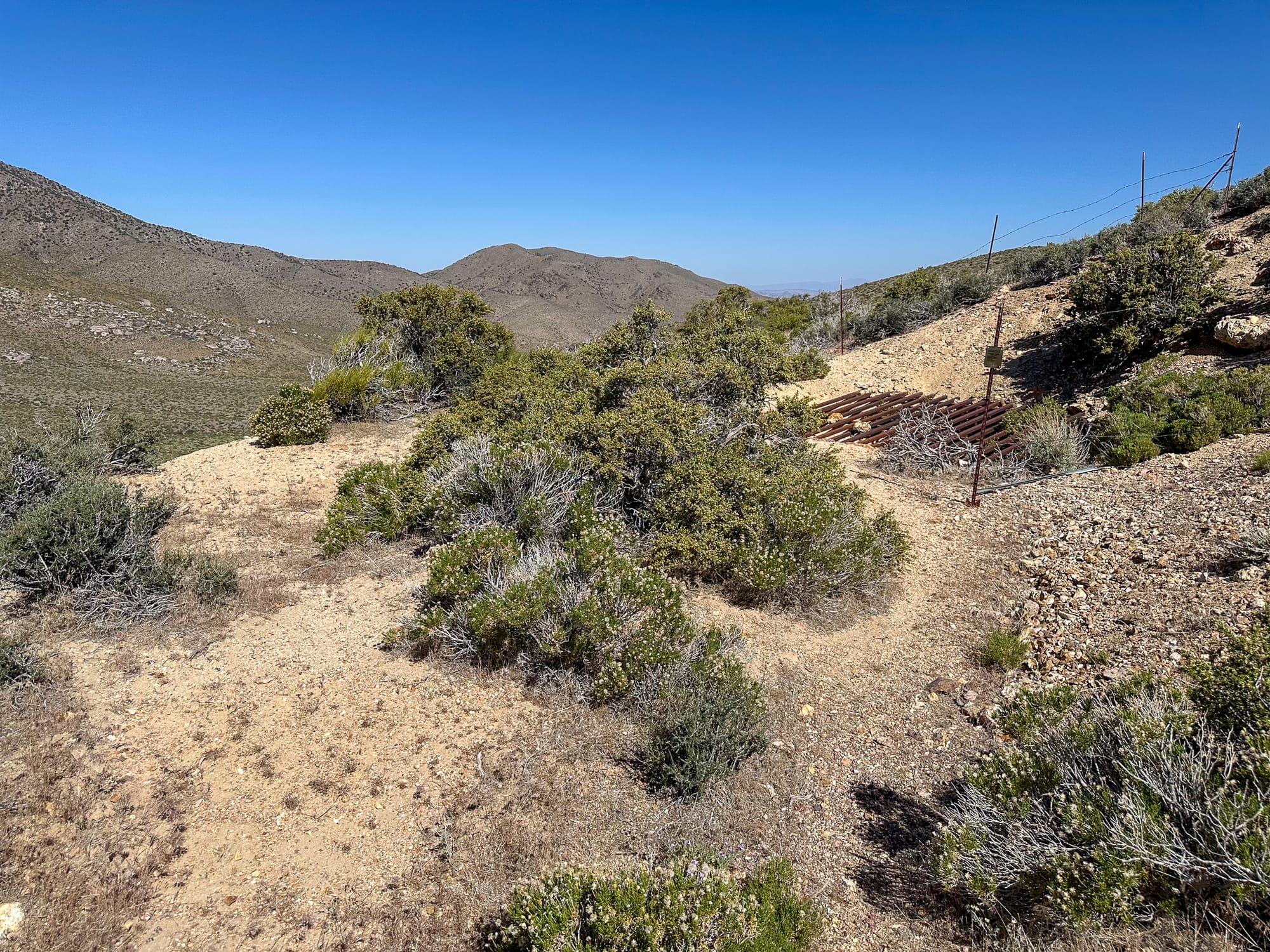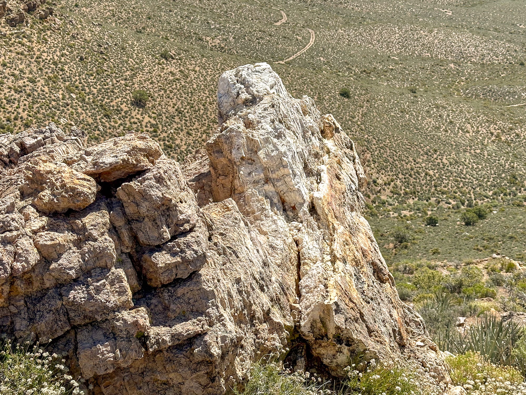 Broken pieces of the quartz vein that has been carried down into the wash beneath the hill.