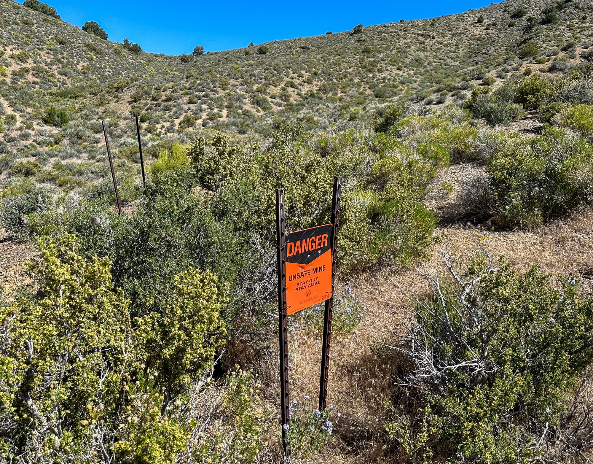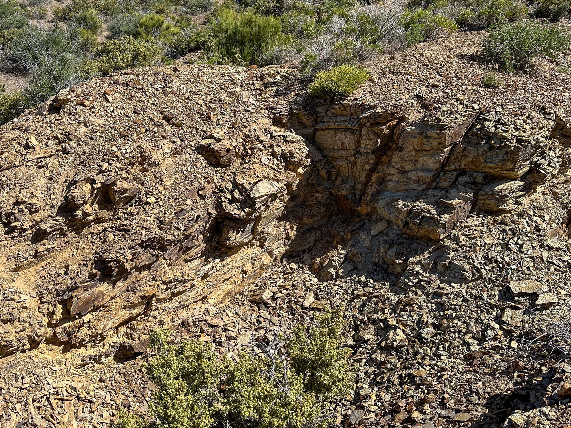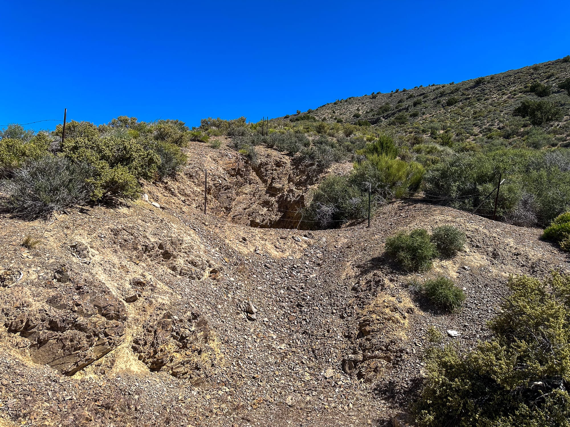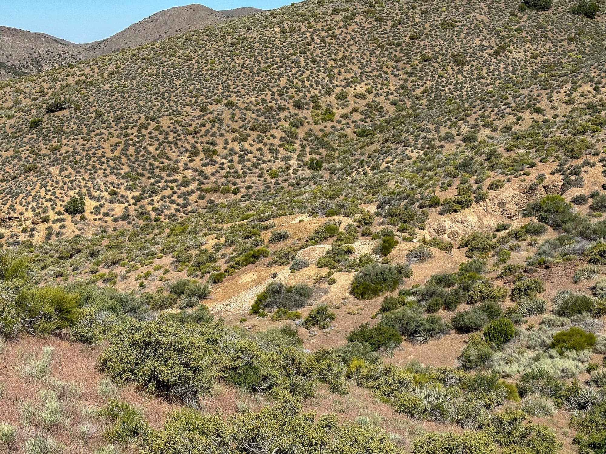 North of the main mine site is the Bunker Stone No. 1 Claim. This the MRDS for this claim indicates it was a copper and uranium prospect. There was very limited copper staining and we didn't have our Geiger counter with us so can't validate if there was any scintillation.
