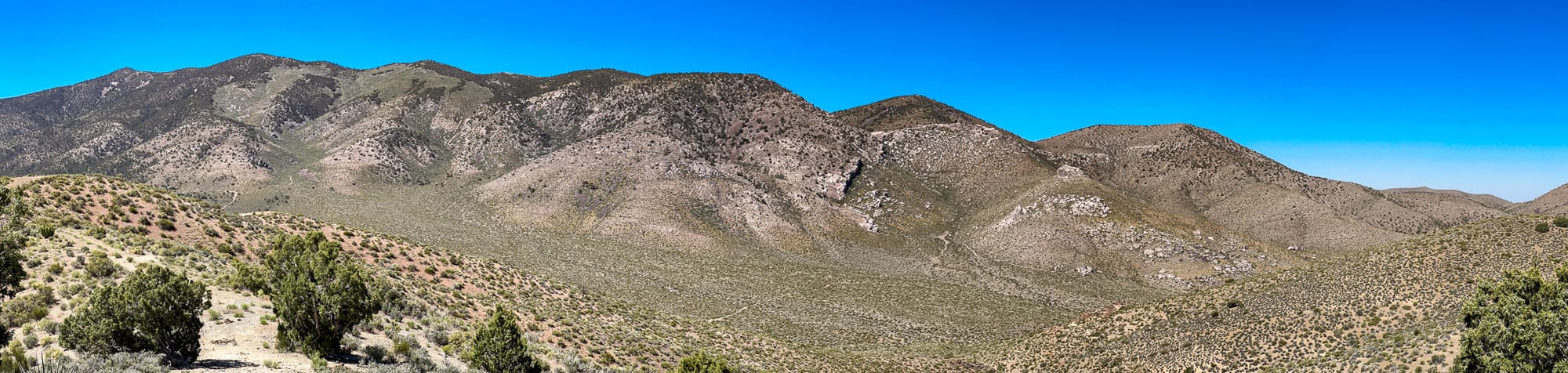 The Stirling Mine (also spelled Sterling), nestled in the northern Spring Mountains just over the Clark County line in Nye County at 36.48976N, -115.95803W (PLSS Mount Diablo Meridian, Township 017S, Range 054E, Section 07, Quarter Section SWNW) at an elevation of 5,901 ft. It was a significant mining site first discovered in the late 19th century and then rediscovered in the early 20th century. This area, rich in lead and gold deposits, had been largely overlooked until the arrival of the Tonopah and Tidewater Railroad, which made access easier and facilitated the transportation of raw materials crucial for mining operations. The first major prospect at Stirling was identified along the canyon's lead-rich limestone formations, setting the stage for further development and renewed interest among prospectors.
